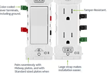the process of connecting electrical wiring to devices that control or provide power to electrical equipment within a building, 15A ,20A receptacles and single pole and 3 way switches.